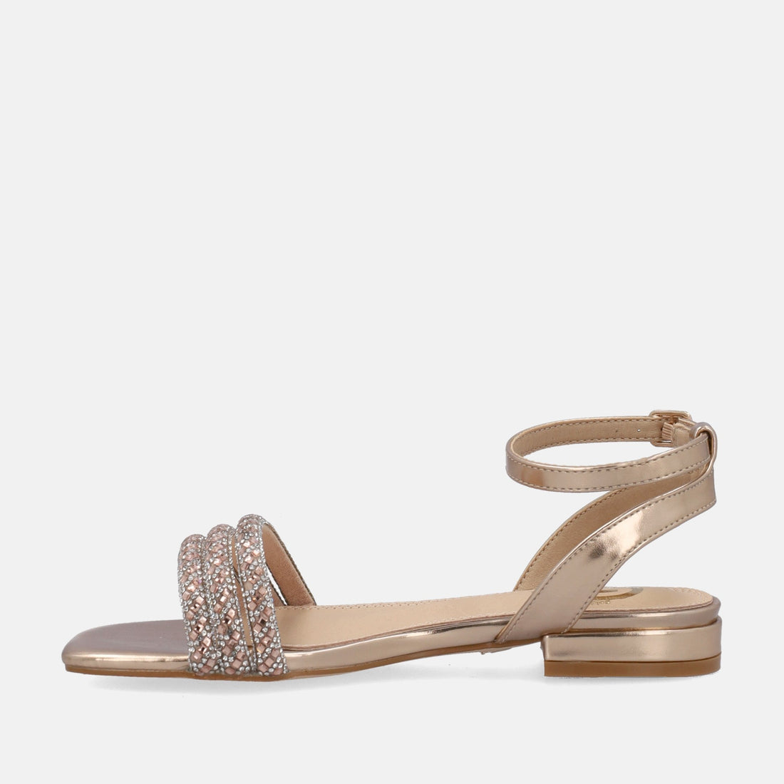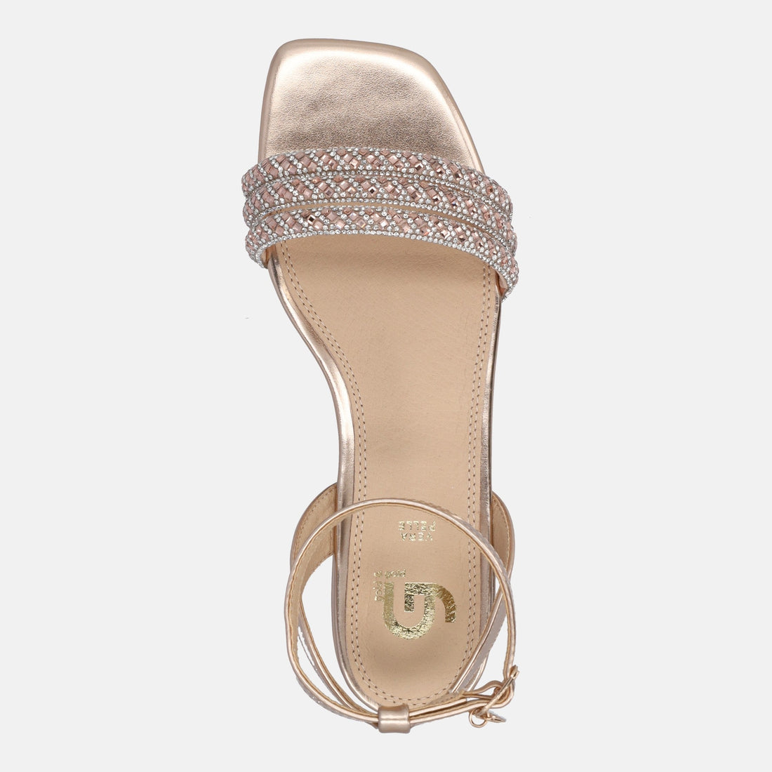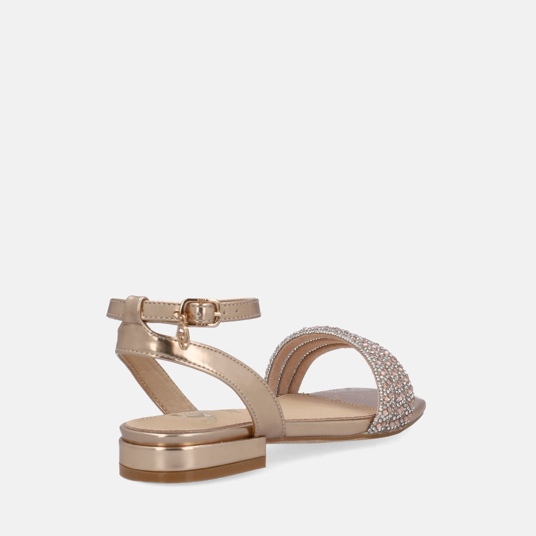Con il loro design minimal, sono caratterizzati da una tomaia in similpelle, color oro rosa, impreziosita da strass che donano lusso e glamour al modello. Dotati di una chiusura con cinturino che garantisce una calzata sicura mantenendo il piede stabile ad ogni passo, presentano infine un confortevole sottopiede in pelle che assicura il massimo comfort, consentendoti di essere al top, sia per un evento speciale che nel tempo libero.